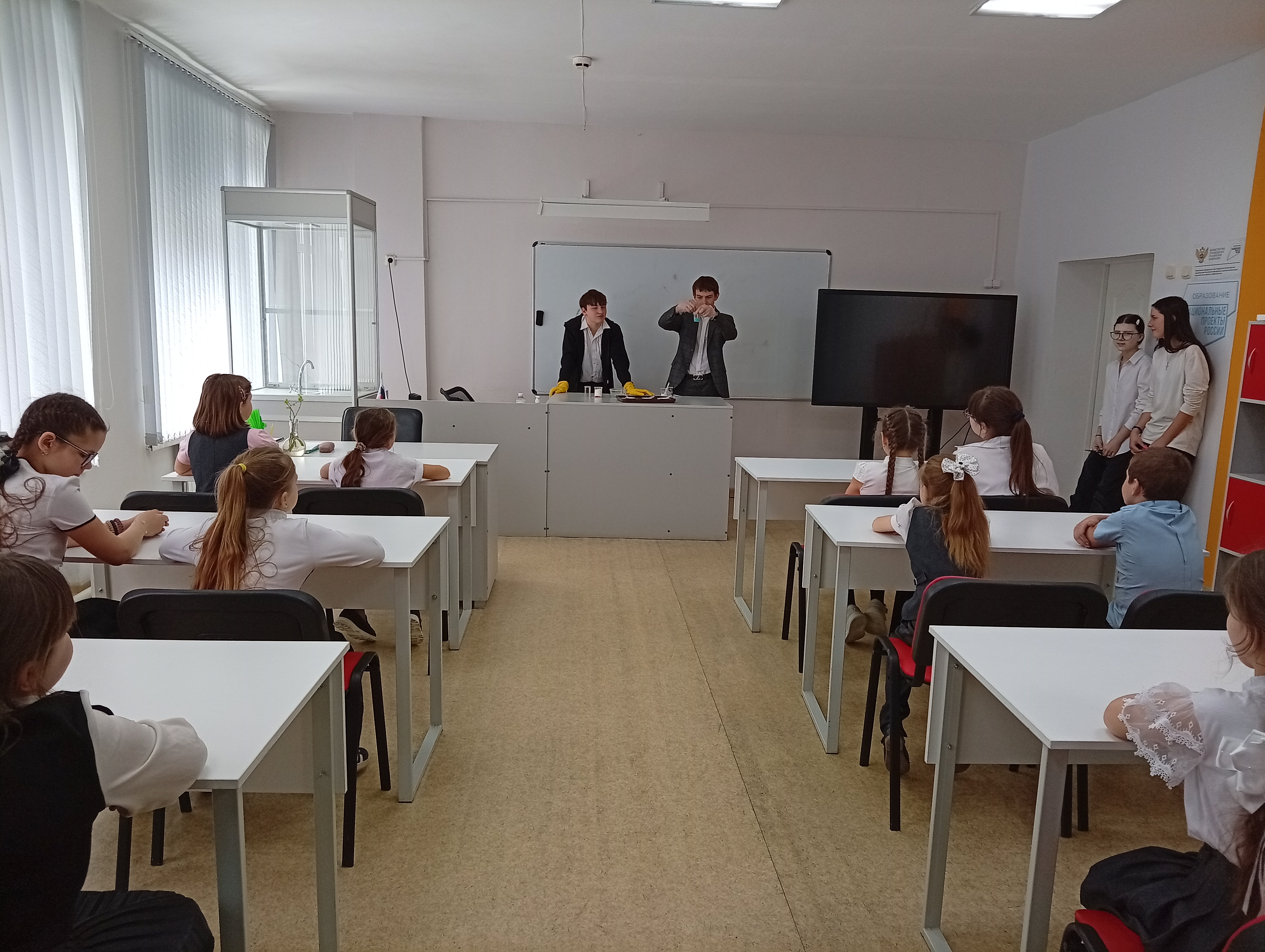 Старшеклассники на переменах провели мастер-классы "Шаг в наномир" для учащихся младших классов
