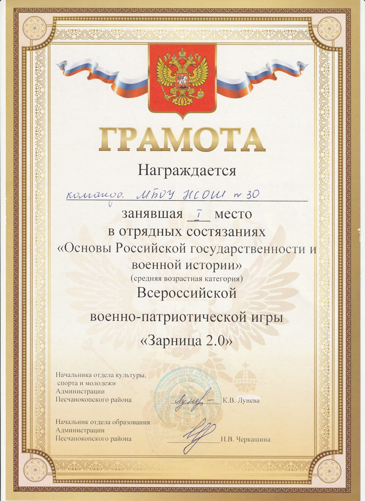 Приказ "О назначении руководителя школьного спортивного клуба"
